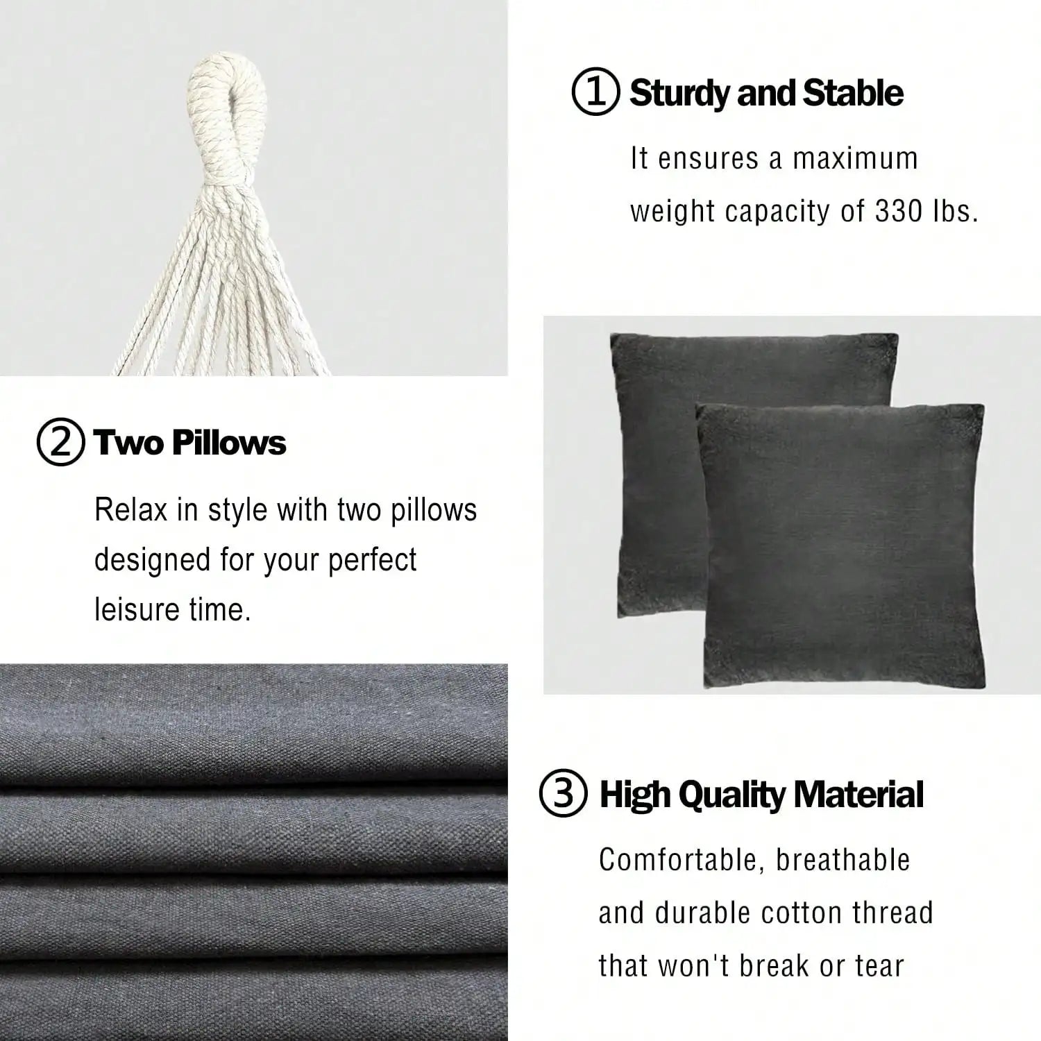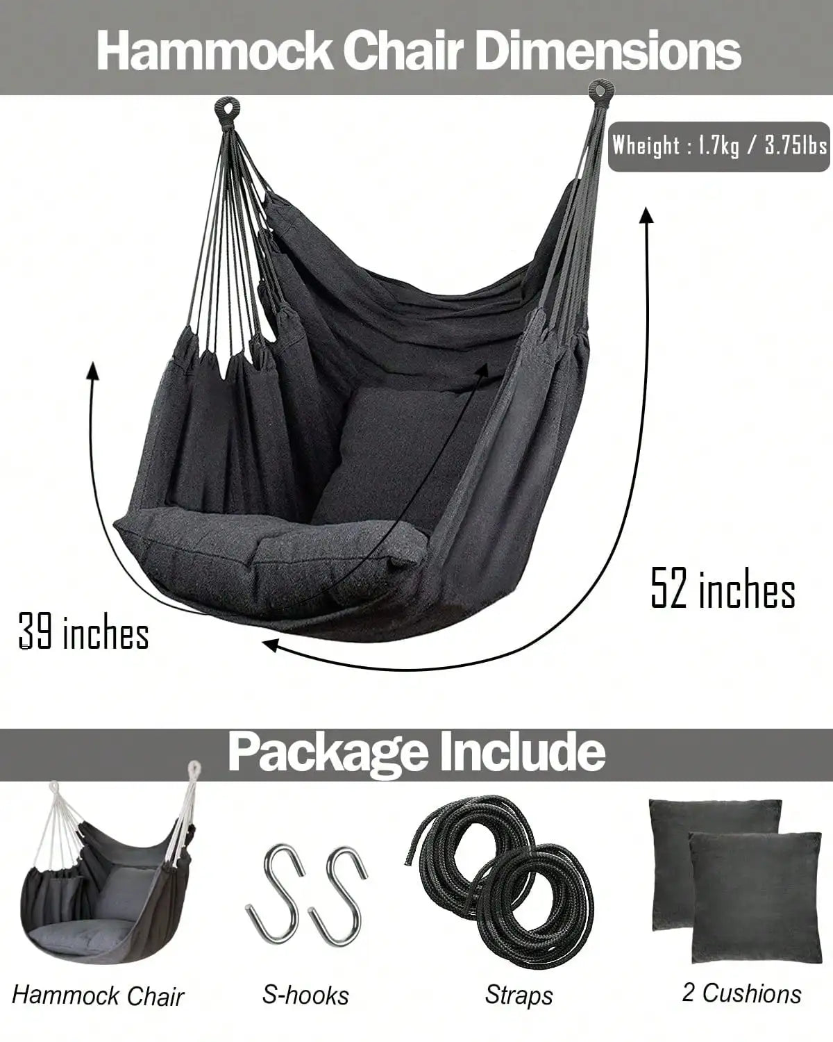 Hanging Hammock Chair Rope Swing 2 Cushions Included